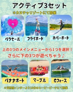 セット内容:アクティブ2(バナナボート&マーブル)+(パラセール、フライボード、ホバーボードの中から1つを選択)