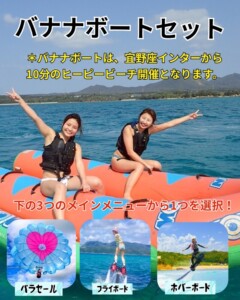 【アクティブ2】マリンスポーツの定番メニューのバナナボートに、スリル満点のマーブル(怖がりな方は、ゆっくり回します♪)のマリンスポーツ満喫セット。東海岸の海を満喫してください♪アクティブ2で撮影したお写真のデータは無料にてプレゼントいたします。